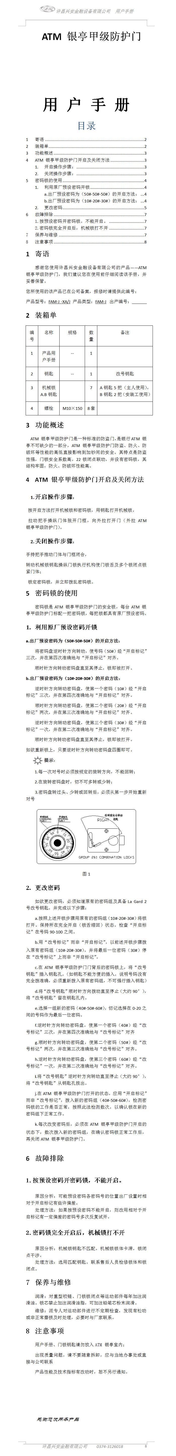 金庫(kù)門(mén)用戶(hù)手冊(cè)
