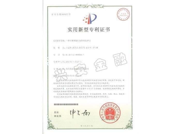 加鈔室墻體專利證書